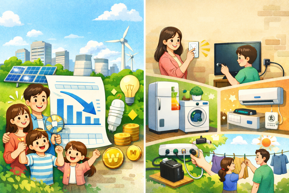 전기요금이 매달 부담으로 느껴진다면, 먼저 사용 습관을 점검해보는 것이 좋다. 대기전력 차단, 가전제품 사용 방식 개선, 효율적인 전기 사용만으로도 전기요금은 충분히 줄일 수 있다. 오늘부터 하나씩 실천해보면 다음 달 전기요금 고지서에서 분명한 변화를 확인할 수 있을 것이다. 전기요금 절약은 거창한 계획이 아니라, 일상 속 작은 습관에서 시작된다.